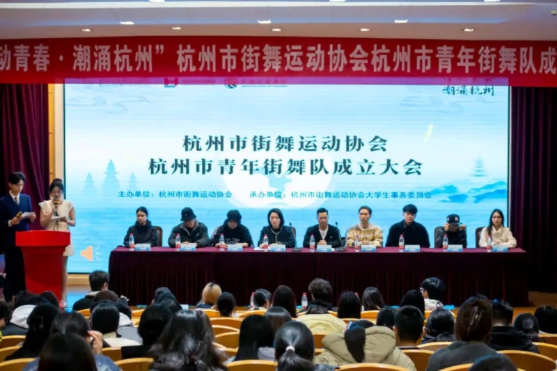 SD街舞社社团指导老师杨梦乐在成立会上发表致辞,她表示看到杭州市青年街舞队扬帆起航,作为其中一份子倍感欣慰。值此杭州市青年街舞队扬帆起航之际,我倍感欣慰与鼓舞。这不仅是对杭州青年街舞文化的里程碑式见证,更是新时代街舞运动蓬勃发展的生动注脚。期待青年街舞队以舞为媒,用青春律动诠释时代精神,以创新编排展现文化自信,为杭城街舞事业注入更多育英力量!