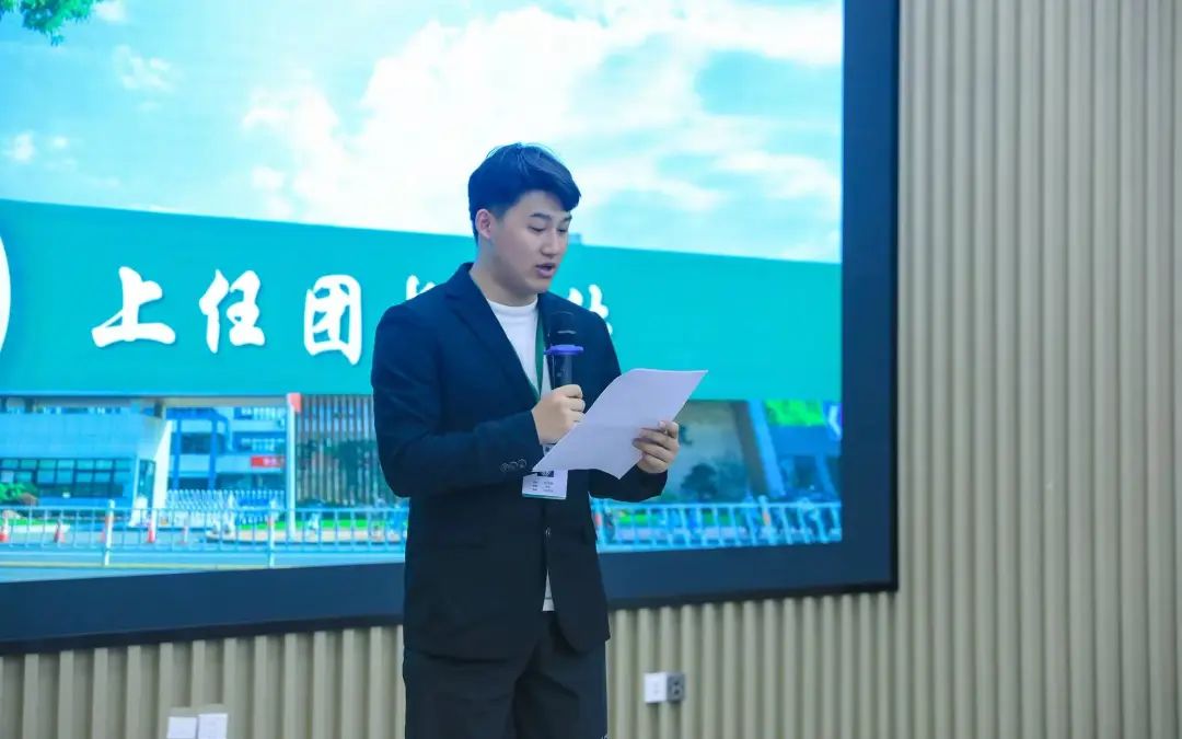 上任团长赵浩阳总结发言。他围绕过去一年社团工作,系统回顾了组织架构优化、特色活动开展、团队协作成果等内容,重点阐述了在大型公益实践、专业技能竞赛等活动中的创新举措与经验收获。