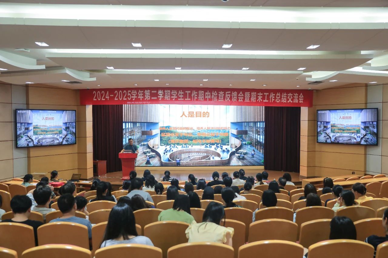 6月27日,学校召开2024-2025学年第二学期学生工作期中检查反馈会暨期末工作总结交流会议。学校党委副书记、副校长王敏出席会议并作讲话,学务部副部长王亦飞布署期末、短学期和假期工作部署,学务部主任助理、各中心负责人,各学院党总支(直属)副书记、学工办主任、全体辅导员以及学务部全体人员参加会议。