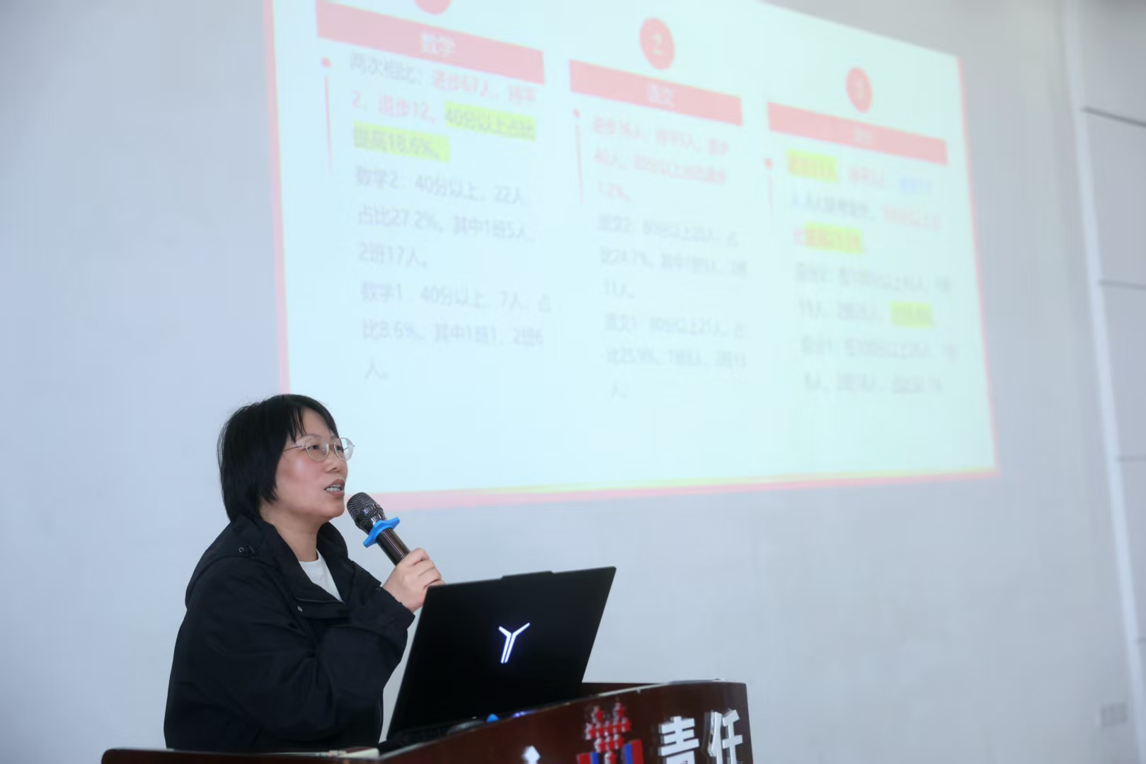 随后,教务办主任王卫平老师对本次月考进行了全面而深入的总结。她运用详实的数据,客观展示了班级整体及各科的进步情况,在肯定成绩的同时,也精准指出了存在的共性问题。王主任再次明确了单招单考的终极目标,并特别针对即将到来的11月份技能实操考试,向全体考生发出了“必过”的动员令。她要求同学们务必合理规划复习进度,注重理论与实践的结合,以积极饱满的状态和从容平和的心态,迎接挑战,决胜考场。这番讲话既有宏观指引,又有微观要求,为同学们下一阶段的复习备考指明了方向。