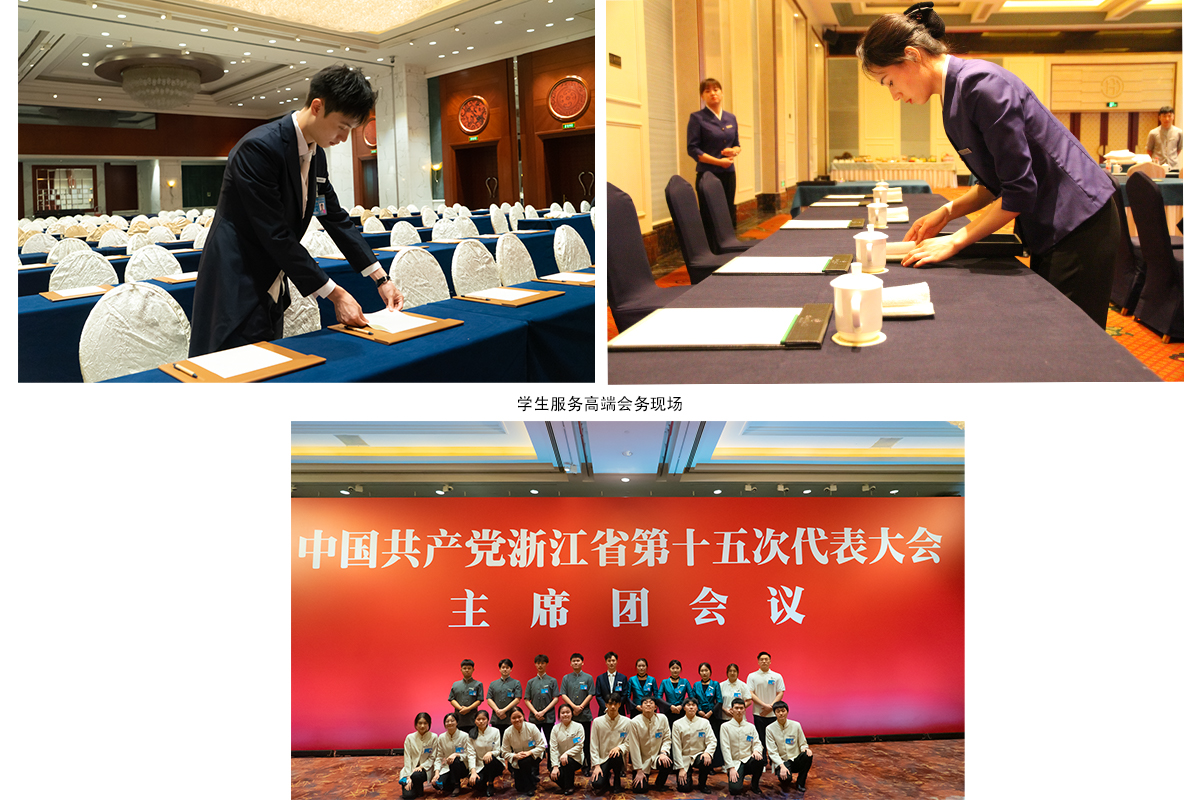 近年来,学生参加了杭州19届亚运会、G20杭州峰会、全球数字贸易博览会、中国财富论坛等重大活动,“杭州第19届亚运会开幕式欢迎宴会”、“金砖六国领导人会议”、“中欧文化部长论坛”、“亚太资管大会”、浙江省党代会、杭商大会等二十余项高规格会务接待,培养学生的社会责任感和使命感,提升学生综合职业能力。