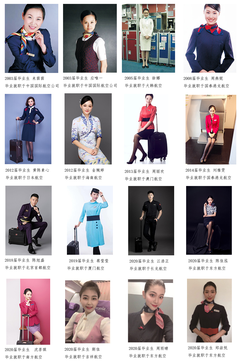 空乘专业优秀校友层出不穷,社会影响力大。据统计,目前毕业生中百余人任各大航空公司客舱服务部经理以上,上千人为乘务长以上骨干,涌现出一大批行业先进人物。