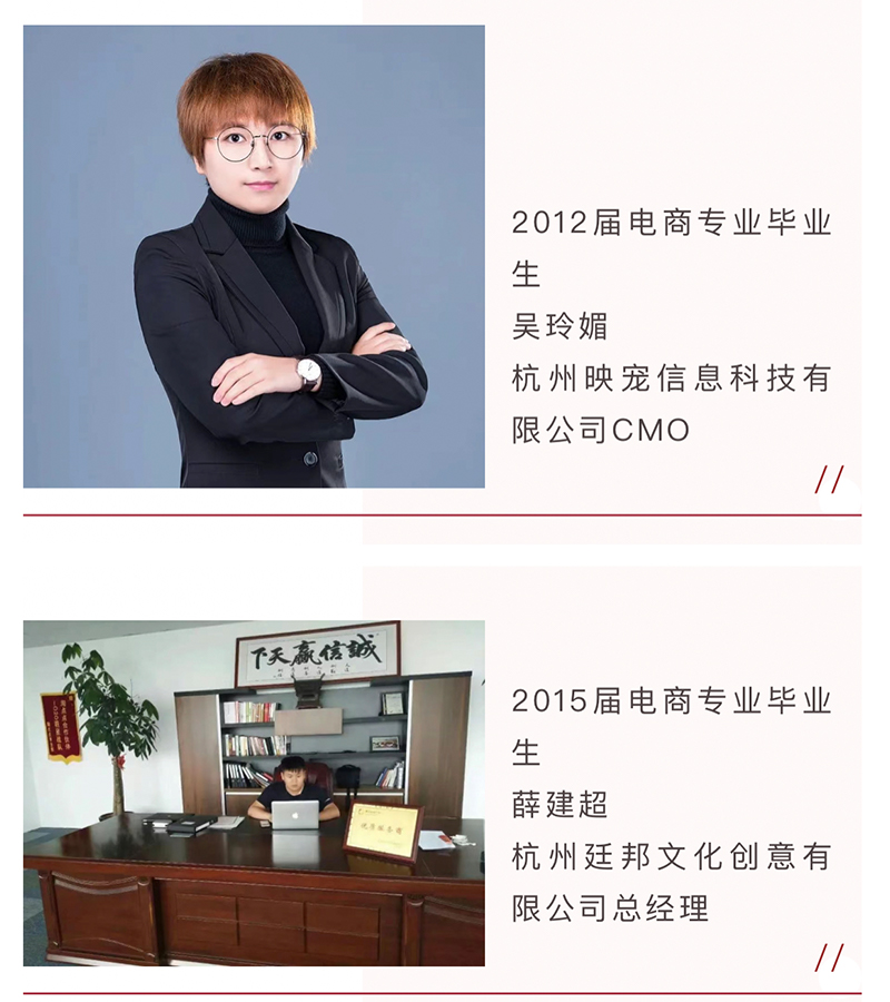 ●2019年电子商务专业被国家教育部认定为《高等职业教育创新发展行动计划(2015-2018年)》国家骨干专业;同年,电子商务专业群被杭州市教育局列为杭州市新型专业群 。
