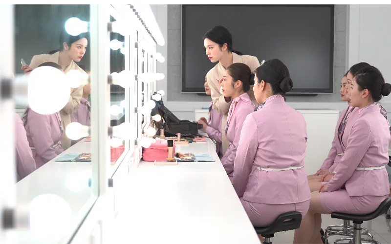 民航交通学院已拥有调酒茶艺实训室、VR实训室、英语听说实训室、民航安全技术实训室、化妆实训室、形体训练实训室、轨道交通实训室等,为校内实训教学提供保障。