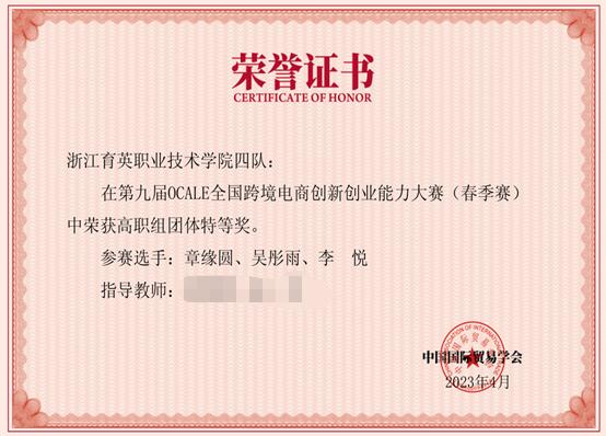 2023第九届OCALE全国跨境电商创新创业能力大赛(春季赛)团体特等奖