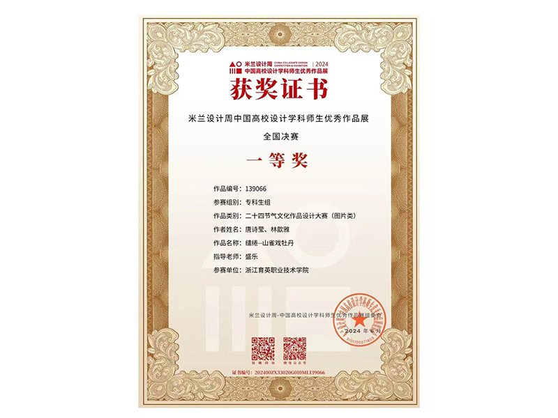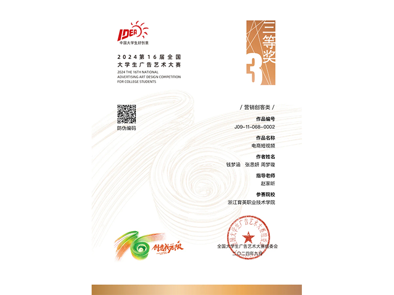 学生陈银(右一)获2023年浙江省美容美发职业技能竞赛创意晚宴化妆学生组三等奖