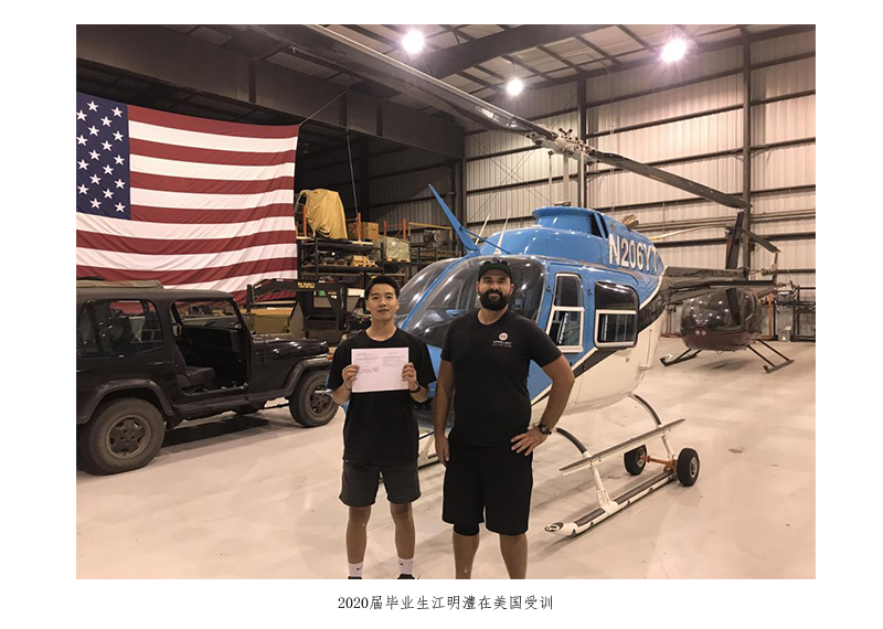 专业目前已有两届毕业生,毕业生主要在中徽通用航空有限公司、上海啸翔通用航空公司、杭州新联通用航空公司、江苏圣豪通用航空有限公司等通用航空公司担任直升机飞行教员、飞行员、地勤等岗位,以及其他交通行业部门就职。
