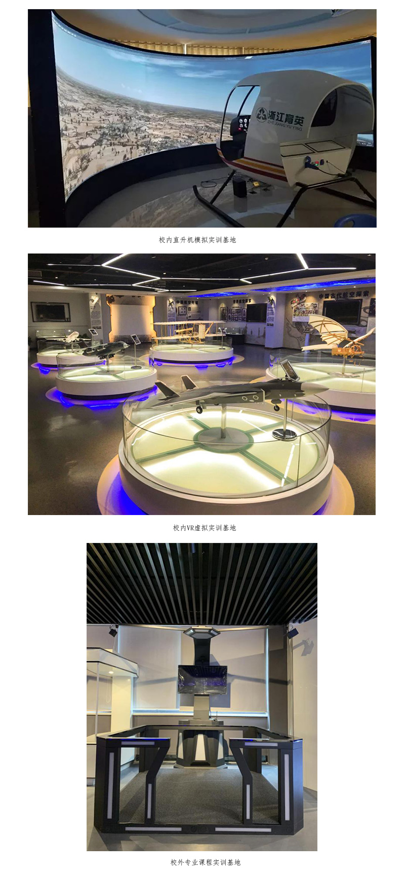 专业建有R22直升机模拟实训室、VR仿真实训室等专业实训室,还与建德航空小镇、安吉天子湖机场、德清航空智造小镇、南航艾维国际飞行学院、中徽通航、杭州新联通航等合作建立了紧密型校外实训基地,充分保障了实践教学的开展。